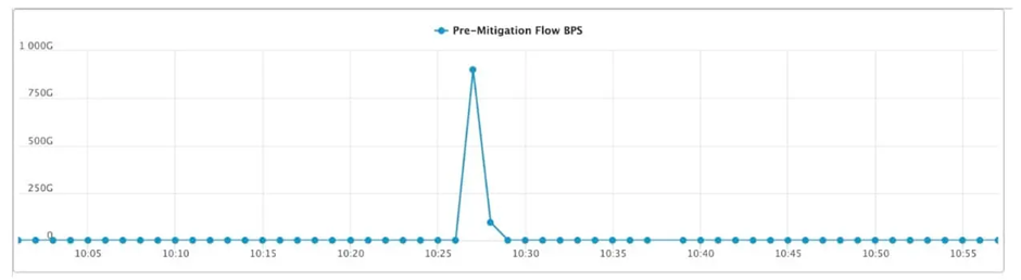 与当前趋势一致,攻击强度大且持续时间短,大多数攻击流量在攻击高峰期爆发。 仅几分钟后,流量模式就恢复正常(图 1)。